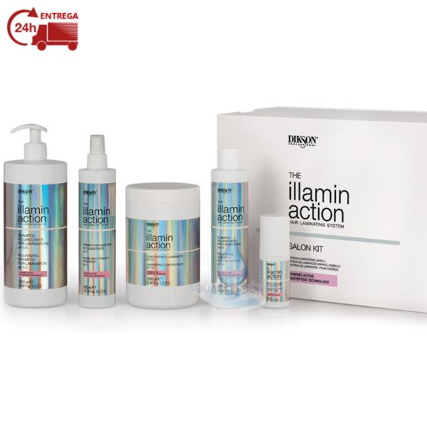 Illaminaction é a laminação do cabelo com a tecnologia Thermo Active Biopeptide. A tecnologia Thermo Attiva baseada em Bio Peptídeos (substâncias formadas por dois ou mais aminoácidos que, quando unidos, criam proteínas) e óleos fluidificantes é ativado pelo calor e fixa um revestimento “lamelar” ao nível cuticular que torna o cabelo elástico compacto e brilhante com um efeito de folha que reflete a luz. A sinergia com o Ácido Hialurônico permite manter o cabelo hidratado durante todo o processo de laminação.