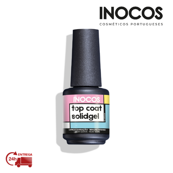 O Top Coat Solid Gel INOCOS, sem goma, tem um acabamento brilhante perfeito. Garante uma resistência única e durabilidade às cores de Solid Tricolor Gel.