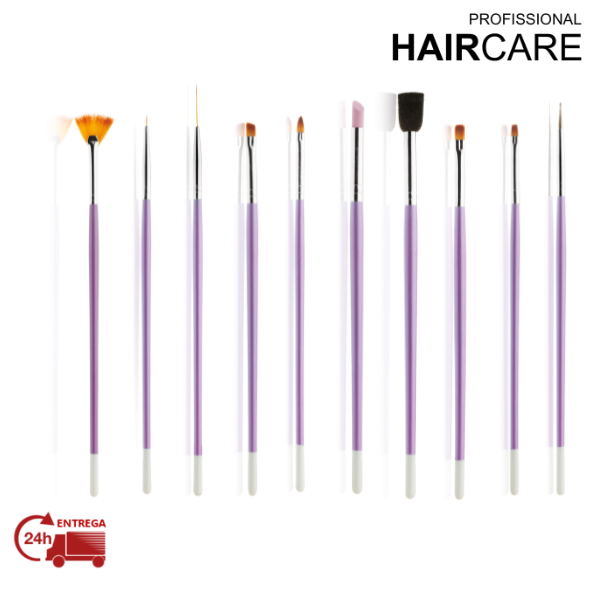 Kit Nail Art composto com os seguintes pincéis: